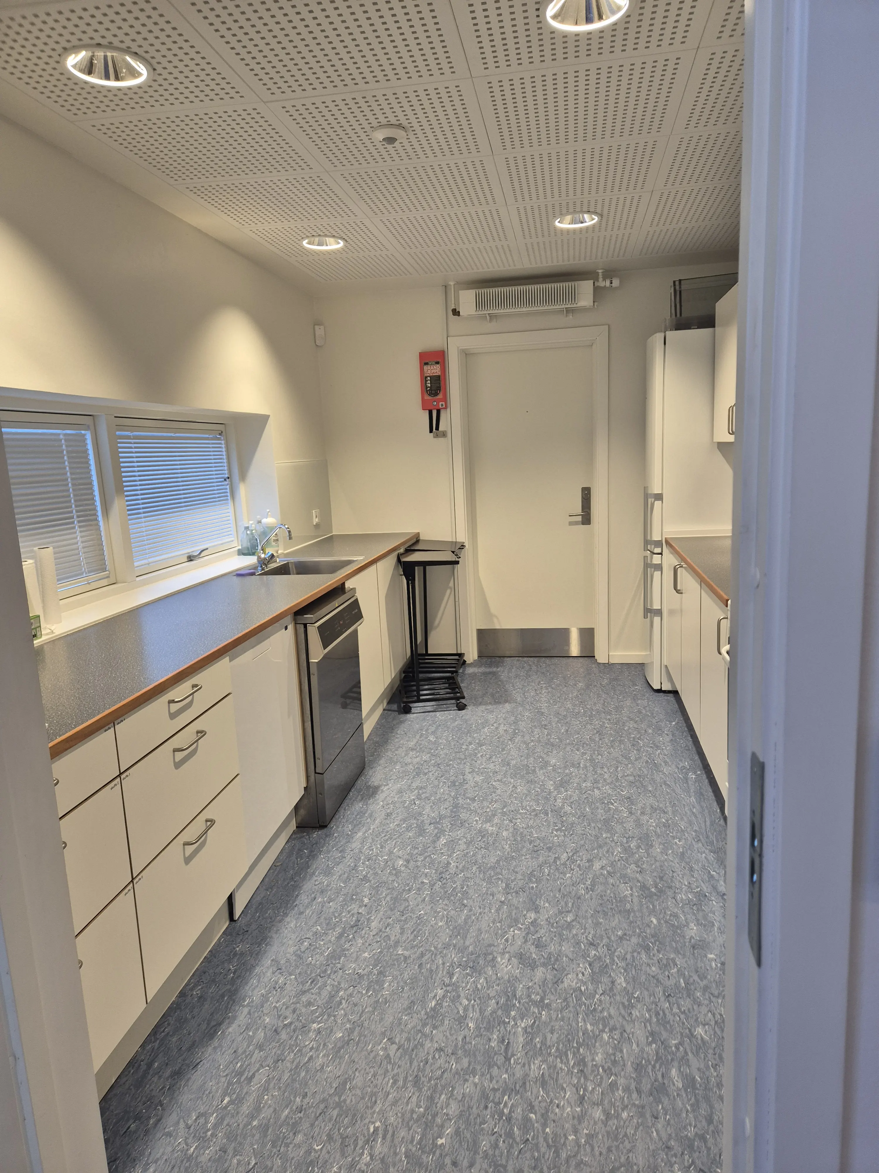 Kost, spand, fejebakke og støvsuger forefindes i lokalerne.