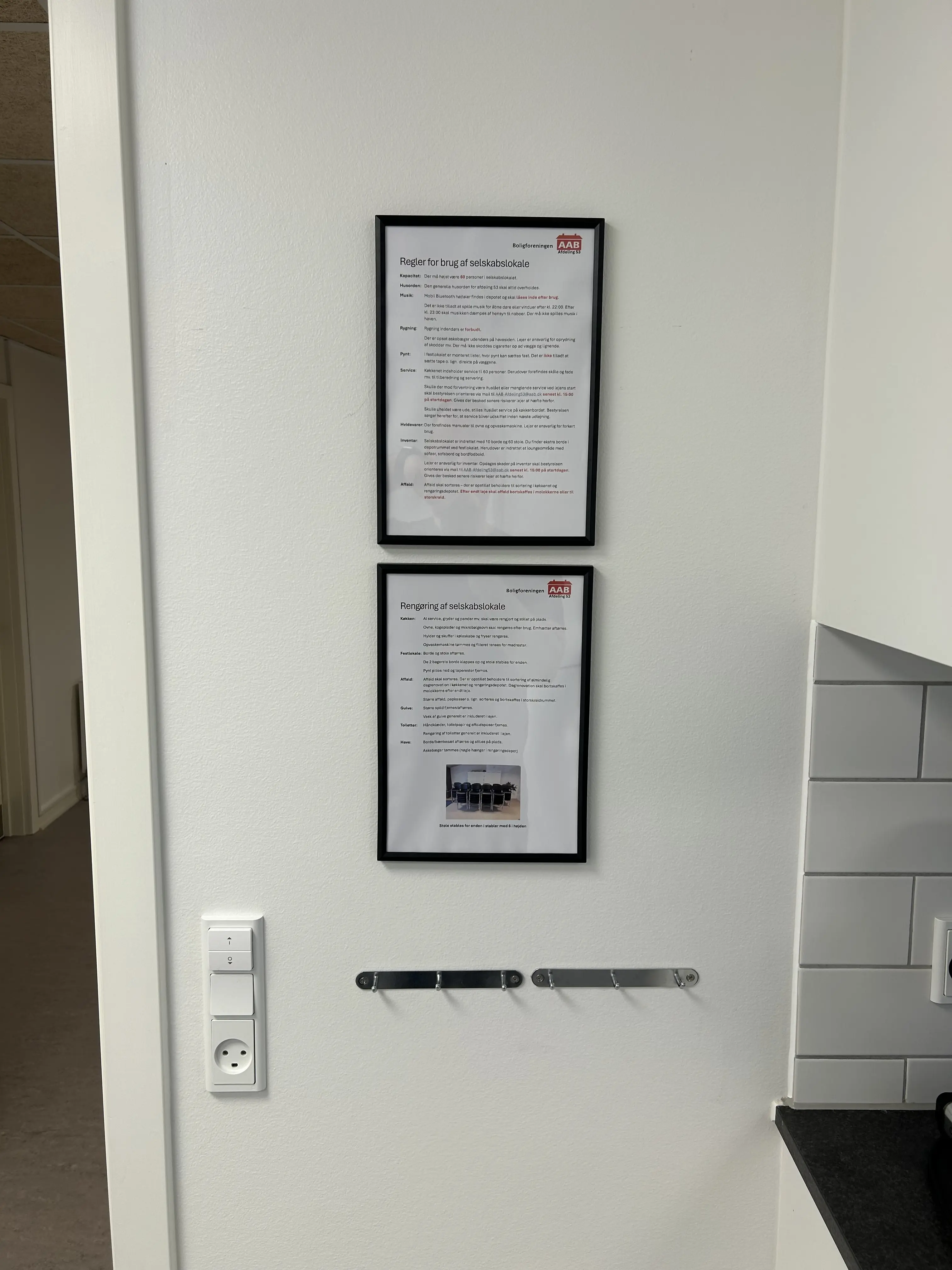 Den generelle husorden for afdeling 53 skal altid overholdes ved brug af festlokalet. Derudover skal regelsæt for brug og rengøring som er ophængt i køkkenet overholdes. Overholdes disse ikke er lejer ansvarlig for evt. ekstra oprydning eller rengøring.